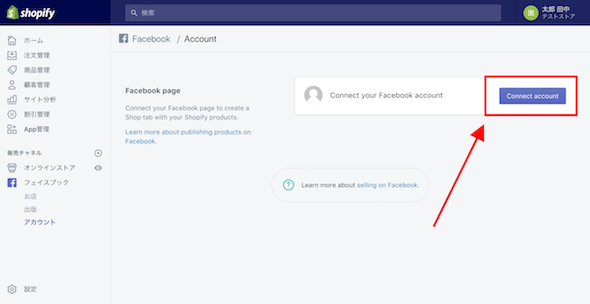 管理画面に戻り、販売チャネルにFacebookが追加されていれば、連携完了までもう少し。