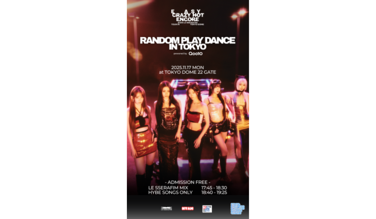 オンライン総合ショッピングモールQoo10を運営するeBay Japanが協賛する「KPOP RANDOM PLAY DANCE (ランダムダンス)」が、「2025 LE SSERAFIM TOUR 'EASY CRAZY HOT' ENCORE IN TOKYO DOME」開催前日である11月17日に開催された。