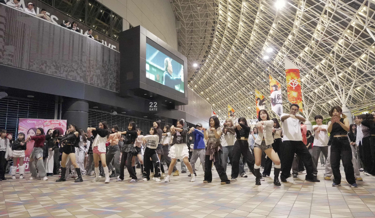 今回のイベントは、人気K-POPグループ「LE SSERAFIM」の東京ドーム公演に合わせて、ライブ会場である東京ドーム前にて開催された。K-POPカルチャーとファンコミュニティを繋ぐファン参加型のランダムダンスイベントとして企画されたものだ。