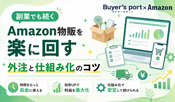 本記事では、副業Amazon物販でボトルネックになりやすい作業を洗い出し、「どこまで自分でやり、どこから外に任せるか」の考え方を整理しながら、ページ作成・FBA納品まで対応できるバイヤーズポートの活用イメージまでをまとめます。