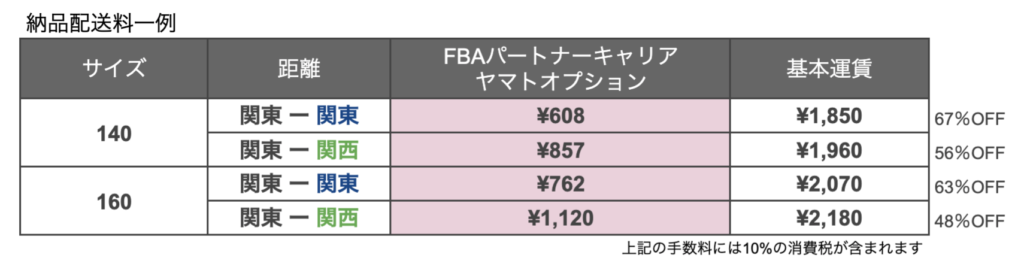 繰り返しになりますが、「FBAパートナーキャリア 」で「ヤマト運輸 」を利用した場合に適用される割引ですので、その点ご注意ください!