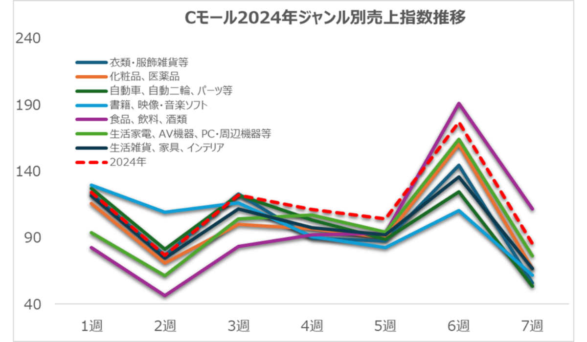 図7:Cモール2024年ジャンル別売上指数推移