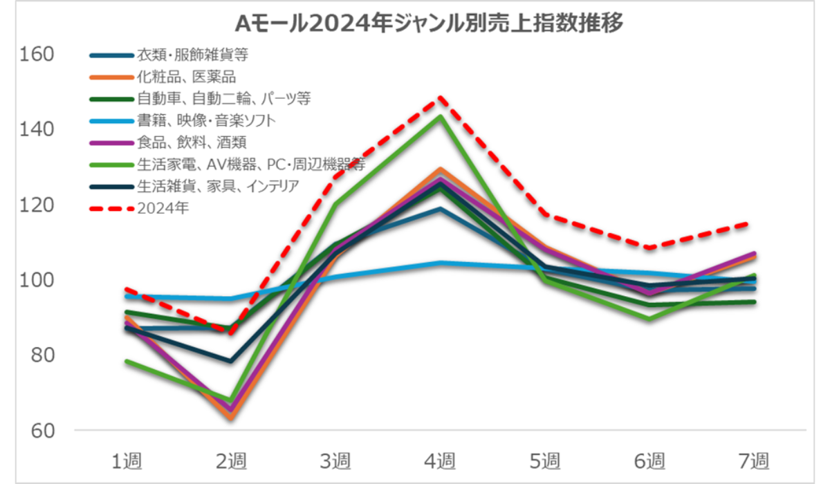 図3:Aモール2024年ジャンル別売上指数推移