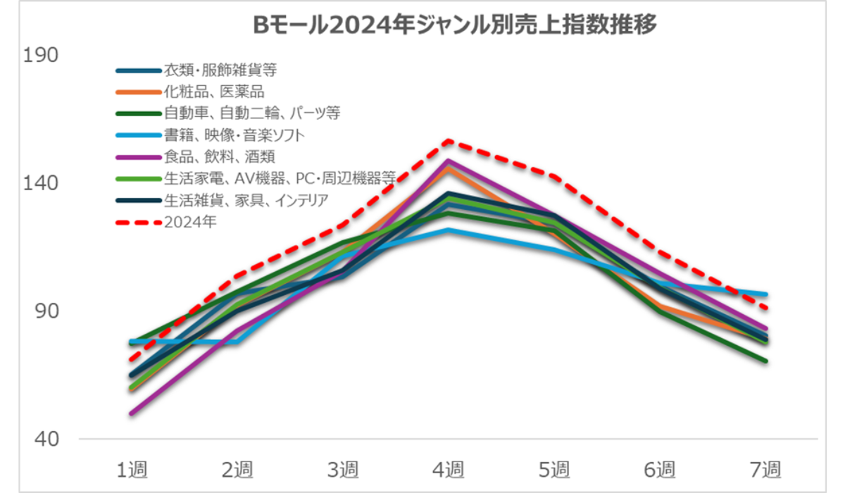 図5:Bモール2024年ジャンル別売上指数推移