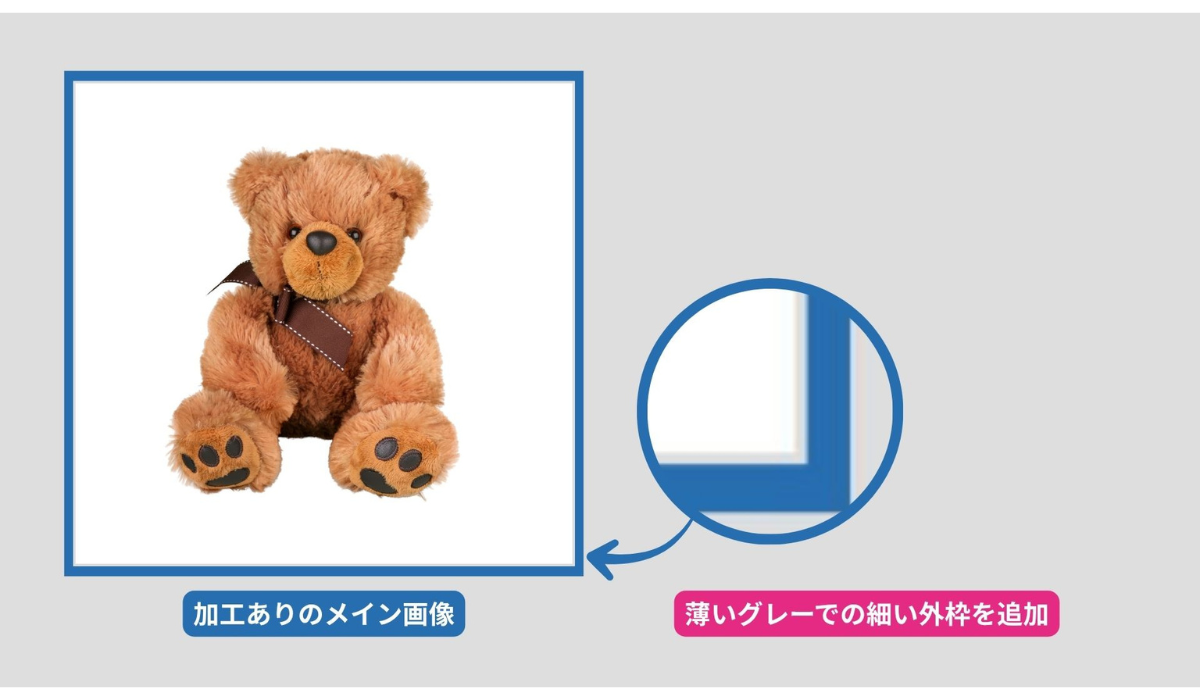 ただ外枠をつければ良いということではなく、黒く太い線で作成するとAmazonに検知され、メイン画像としてNGになる場合があります。