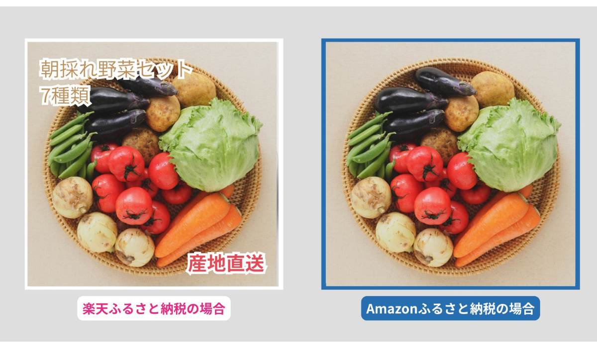 基本的にどの自治体様もふるさとチョイスや楽天ふるさと納税の画像には、返礼品関する文字情報や写真の背景などが存在している状況です。