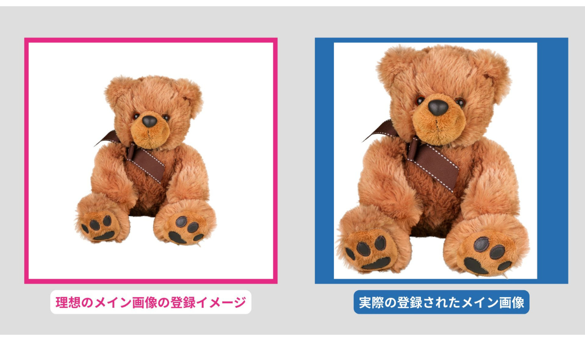 続いての注意点としては、背景を白くした画像を使用した際に「正方形で余白をもって作った画像がなぜか余白をトリミングされて登録されている」というお悩みです。