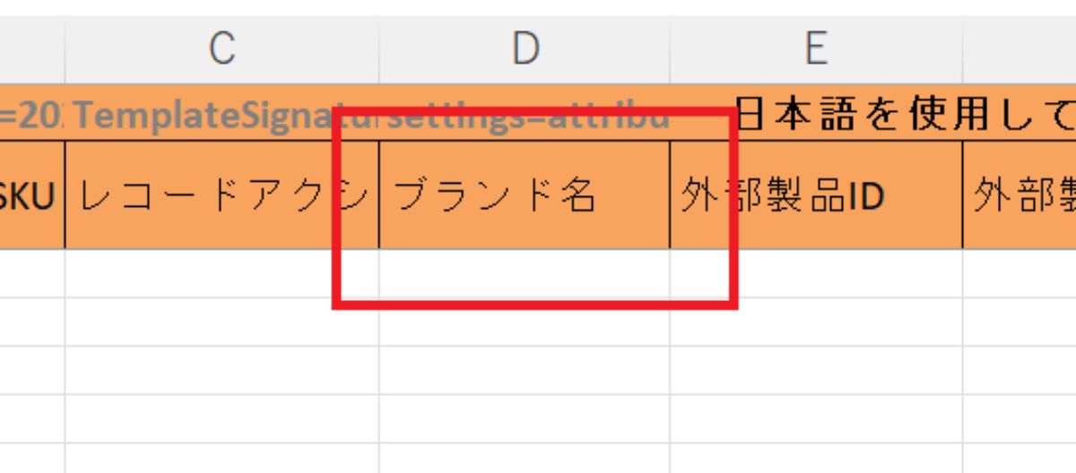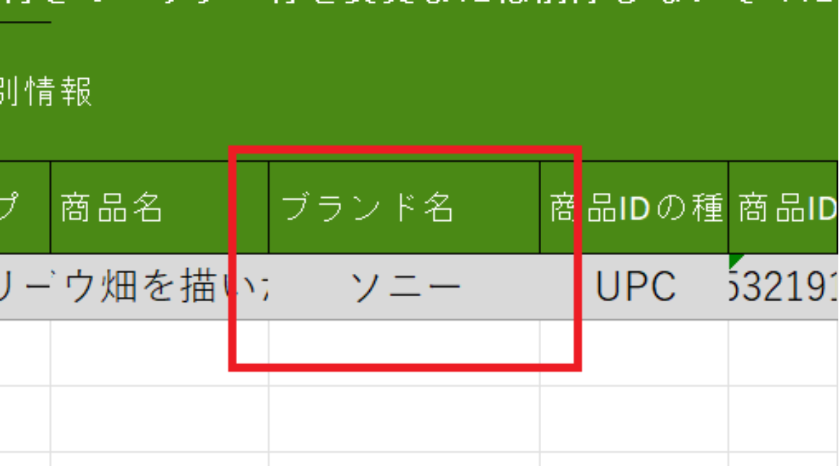 在庫ファイルをダウンロード後、以下の「ブランド名」の項目は空欄にてアップロード