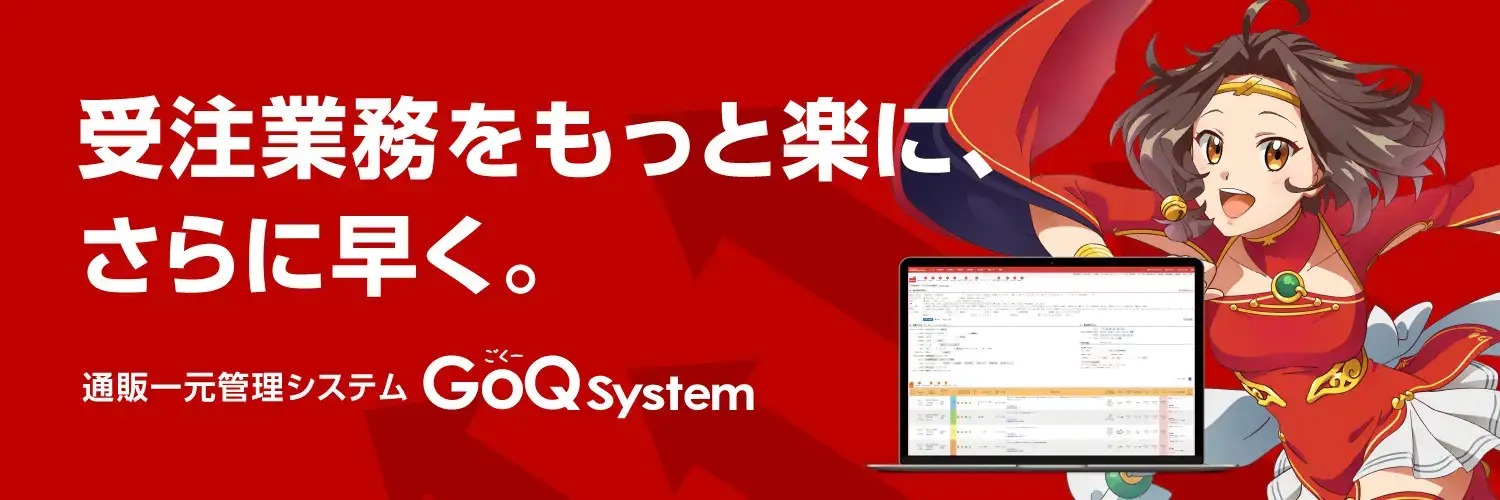 GoQSystemは通販業務を一元管理できるシステムである。全てのネットショップの受注・売上・在庫・商品情報を1つのシステム内で管理できるため、業務効率を大幅に向上させることが可能となる。