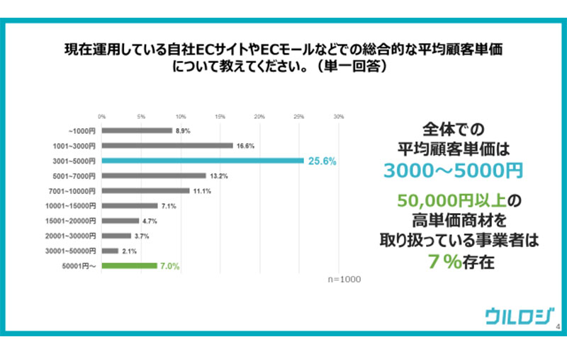 この結果から、EC市場においては3000円~5000円の顧客単価が中心となっていることが明らかとなった。
