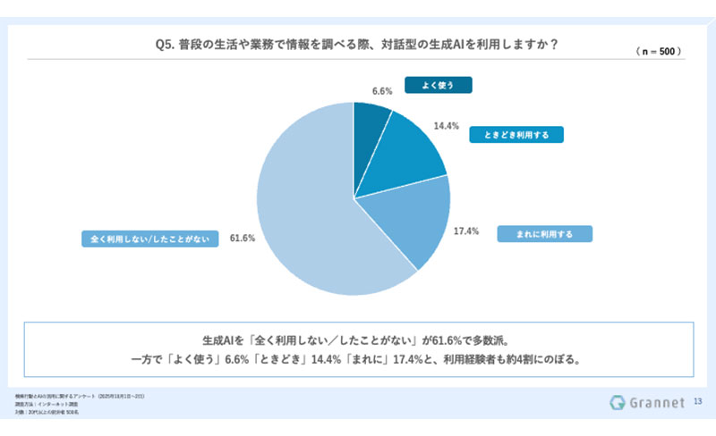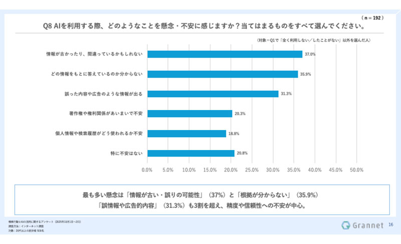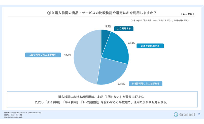 株式会社グランネットは2025年10月24日、「AI検索機能の急速な進展がユーザーの情報収集と購買行動に与える影響」を明らかにするため、Webアンケート調査を実施。その結果を公表した。
