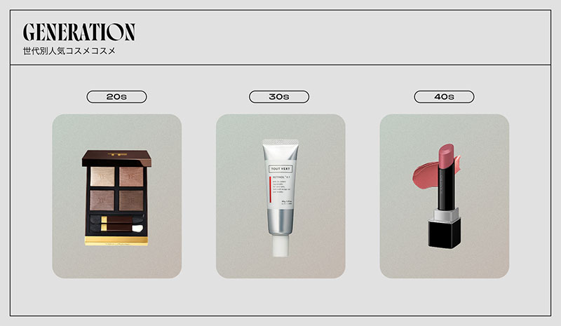 各年代に特に支持されたコスメを選出する「年代別ベストコスメ大賞」の一部も紹介する(詳細は特設ページ)。