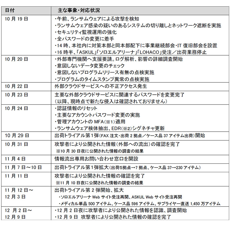 ※画像元:ランサムウェア攻撃の影響調査結果および安全性強化に向けた取り組みのご報告(アスクル株式会社)