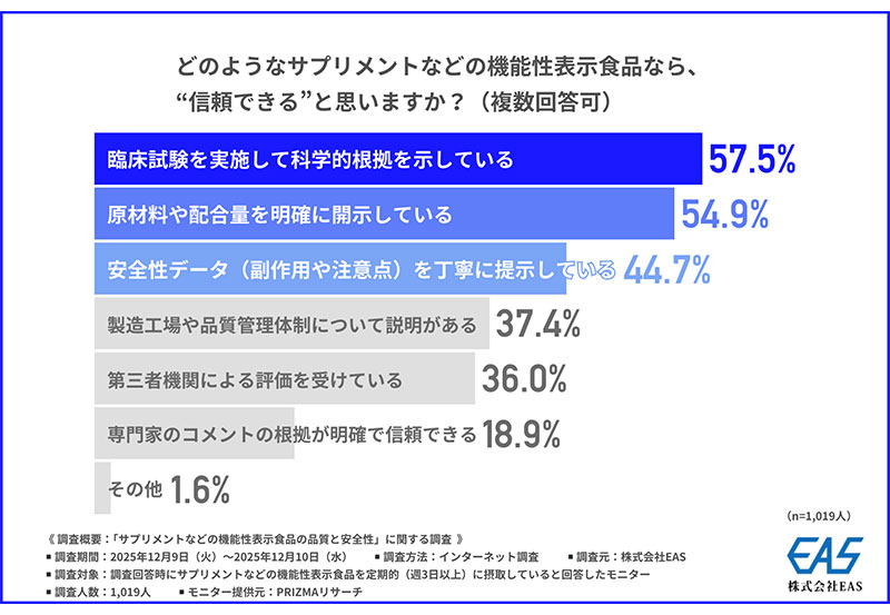 半数以上がサプリの安心感に「臨床試験による科学的根拠」を重視 EAS調査