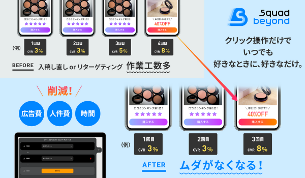 「Squad beyond」がユーザーの訪問回数に応じたLP...
