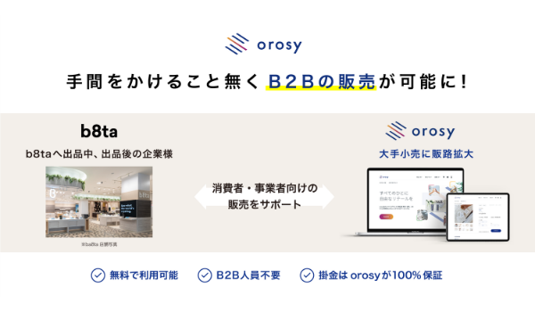 卸仕入れサイト「orosy」と体験型ストア「b8ta」が...