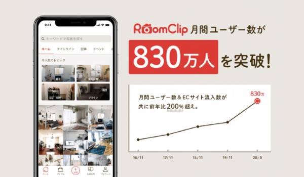 実際の部屋写真が集まる『RoomClip』の月間ユーザ...