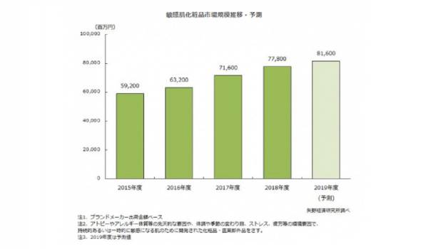 国内『敏感肌市場』は前年度比108.7%の778億円規...