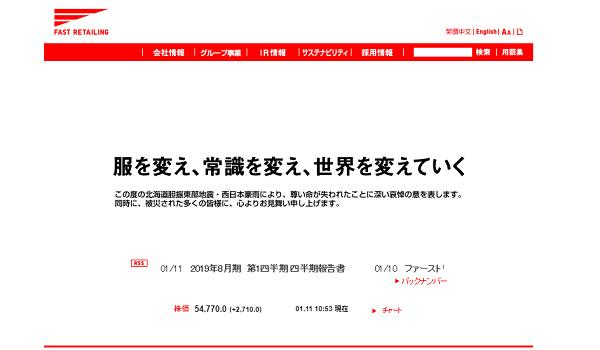 ファーストリテイリングが2019年8月期 第1四半期業...