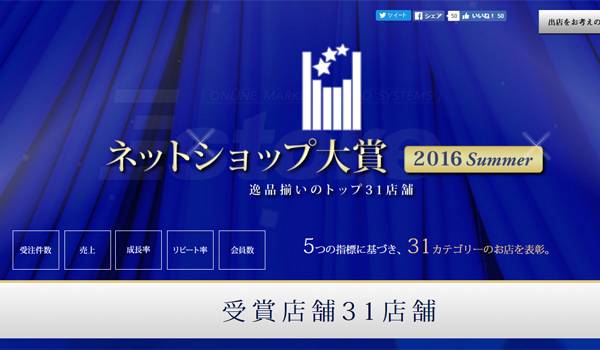 Eストアー「ネットショップ大賞2016Summer」受賞店...