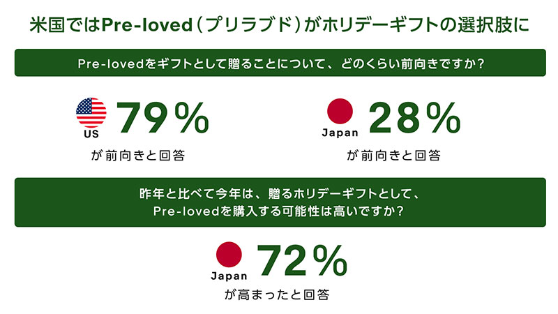 日本においては28%にとどまっているが、72%が「昨年と比較して、Pre-lovedを贈り物として選ぶ可能性が高まった」と回答している。