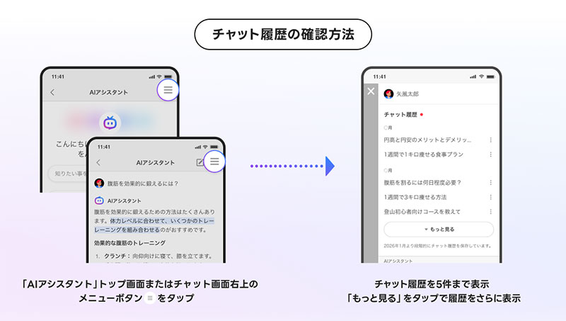 ※1:チャット履歴は2026年1月13日以降のものが順次表示される。