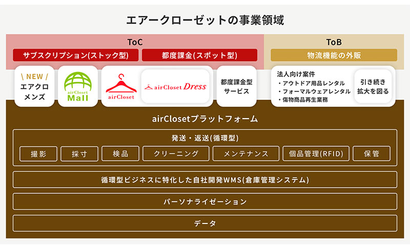 エアークローゼットは洋服をシェアリングする循環型ビジネス「airCloset」の運営を通じて、循環型プラットフォームを構築してきた。
