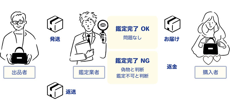 真贋鑑定オプションを選択し、鑑定の結果商品が基準を満たしていない「鑑定基準未満」と判断された場合、注文はキャンセルとなる。注文商品は出品者に返送され、購入金額はユーザーに返金される。