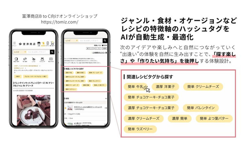 awoo AIの活用により、富澤商店オンラインショップ内のレシピコンテンツにおいて、次の体験が実現する。
