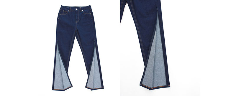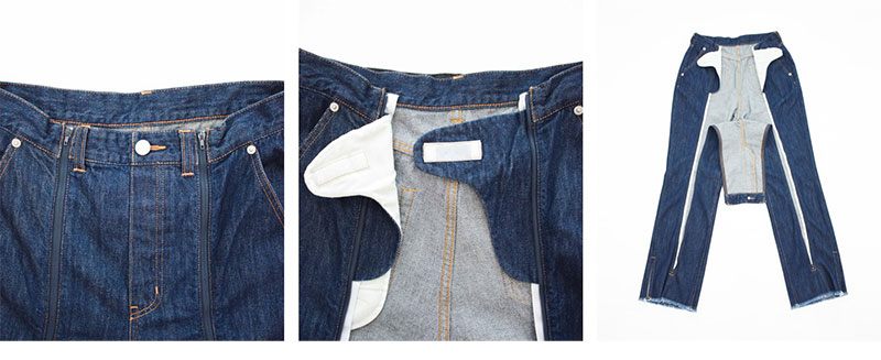 脇の縫い目部分に目立たないファスナーを施し、閉めた状態では通常のパンツと変わらないデザインに。足に装具を着けているなど、裾口が狭いパンツへの足入れが難しい方でも、脇を開くことでスムーズに着脱できる仕様になっている。
