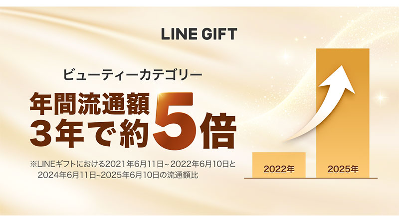 「LINEギフト」のビューティーカテゴリーは、ここ数年で急速に成長を遂げており、3年で年間流通額が約5倍(※1)に成長している。
