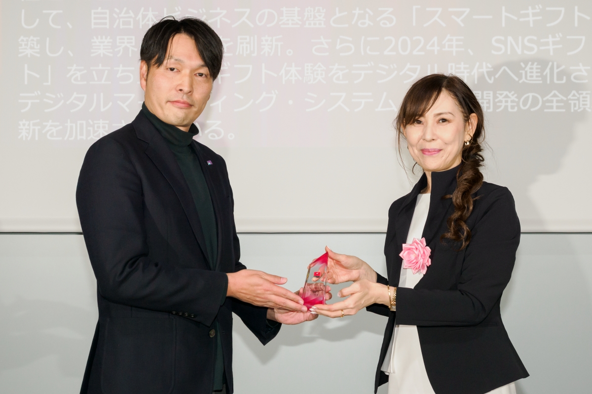 【ブレイクスルー賞】を受賞したのは、創業以来、通販・ギフト業界のリーディングカンパニーとして歩み続けているリンベル株式会社の執行役員でEC統括部 本部長の大川和弘氏。大川氏は近年のデジタルギフトの波を捉え、リンベルのデジタル戦略を刷新。自治体ビジネスの基盤となる「スマートギフト」では「選べる」「足せる」自由なポイント交換システムを構築し、2024年、SNSギフト「ギフトリスト」をリーダーとしてサービスインさせ、ギフト体験をデジタル時代へと進化させて、EC売上高を2.4倍に成長させている。