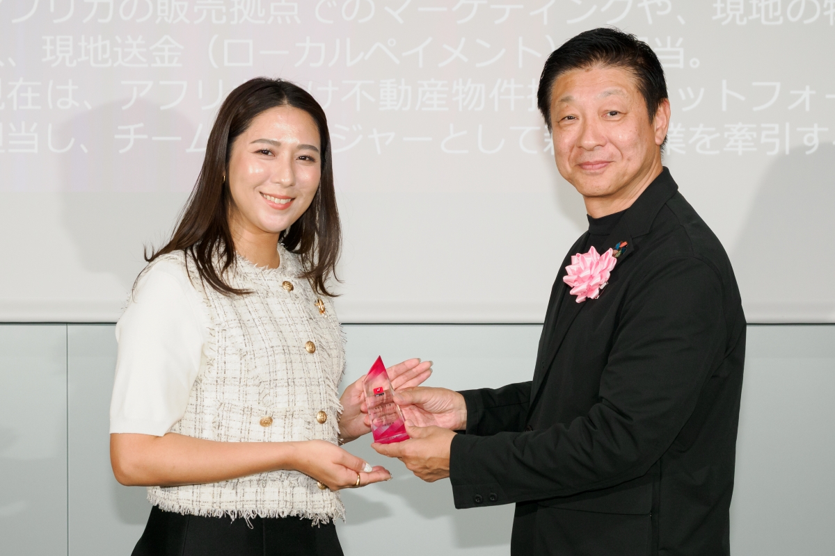 【越境ビジネス賞】を受賞したのは、株式会社ビィ・フォアードの土屋汐莉氏。同社は中古車の越境ECという難易度の高いカテゴリーで、214の国と地域から大きな取引先を持ち、中古車の月間販売台数は約1万5000台という圧倒的な地位を築いている。同社でデジタル企画チームのマネージャーを務めている土屋氏は、20カ国以上にローカライズした全41アカウントのSNSの運用、ローカルペイメント、そして新規事業への挑戦など、さまざまなカテゴリーに挑んできたことが高く評価された。現在は、アフリカ向け不動産物件掲載プラットフォーム事業を担当し、チームマネージャーとして新規事業を牽引している。