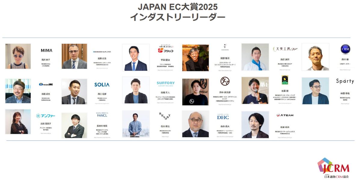※「JAPAN EC 大賞」のインダストリーリーダーとは、EC通販業界の発展に貢献し、日本通販CRM協会が目指すCRM(JCRM)の理念や活動に賛同する方。自薦/他薦の応募を協議しJAPAN EC大賞運営事務局で選出された方