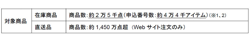 ※2:「商品数」は弊社から供給可能な商品点数。「申込番号数」は顧客が注文可能な商品種類数(サイズ別、入数別などを含む)。