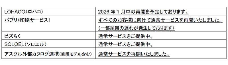 ◯関連記事:アスクル、ASKUL Webサイトでの注文を2025年12月3日より再開【第12報】
