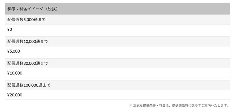 「future Scenario Cast」は、配信通数に応じた料金体系が予定されている。