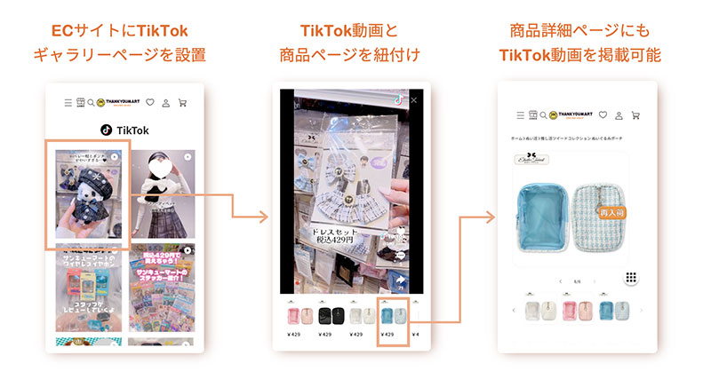 TikTok動画をTOPページや商品詳細ページ、ランディングページ(LP)など、サイト内の目的に合わせて自由に配置・活用することで、商品との新しい出会いを創出し、サイト回遊率およびコンバージョン率(CVR)の向上を実現する。EC市場の発展につながる取り組みとして、今後の動向に期待が寄せられる。
