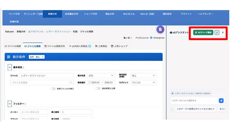 ※画像元:Nint ECommerce、独自のEC市場データ基盤とAIを融合した新機能「AIアシスタント」を提供開始(株式会社Nint)