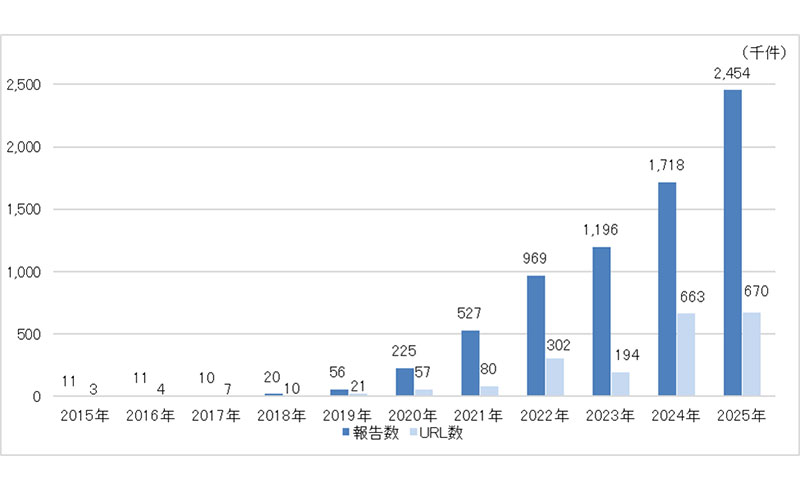 ※フィッシング対策協議会「フィッシングレポート 2025」の数値をもとにJCCAにて加工
