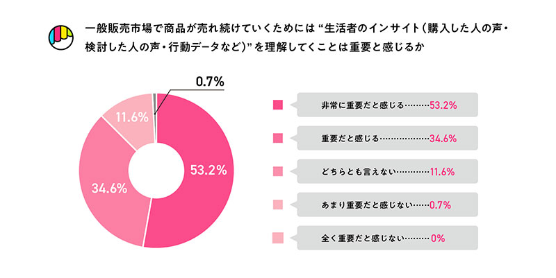 また、一般販売市場で商品が生き残り続けるために、約9割が「生活者のインサイトが重要である」と回答している。