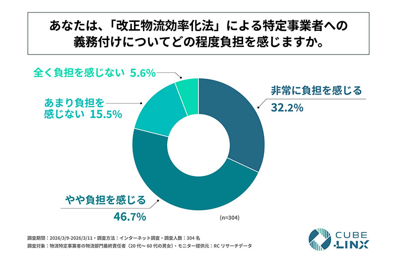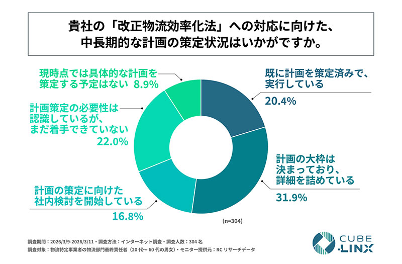 株式会社CUBE-LINXは2026年3月25日、「改正物流効率化法への対応実態に関する調査」の結果を発表した。