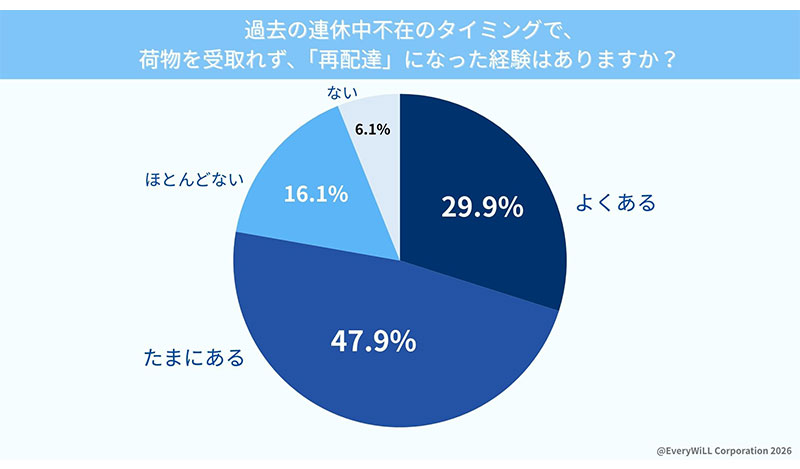 株式会社EveryWiLLは2026年4月21日、「GWにおける宅配荷物の受取りに関する意識調査」の結果を発表した。