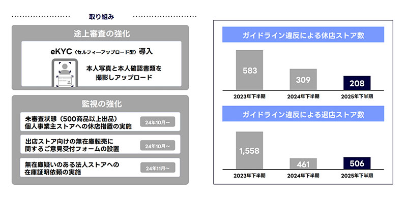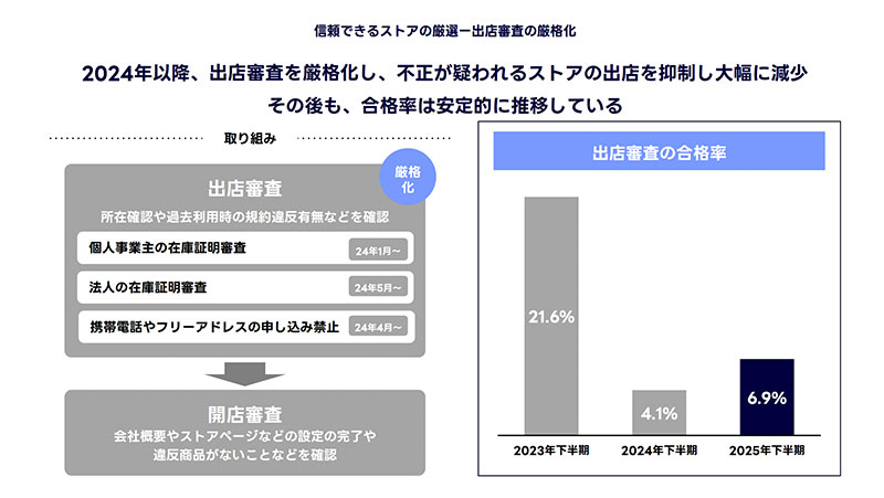 また、途上審査および監視の継続的な強化により、悪質なストアは全体として減少傾向にある。特に2024年から法人の「無在庫ストア対応」を強化したことで、ユーザー問い合わせも減少している。