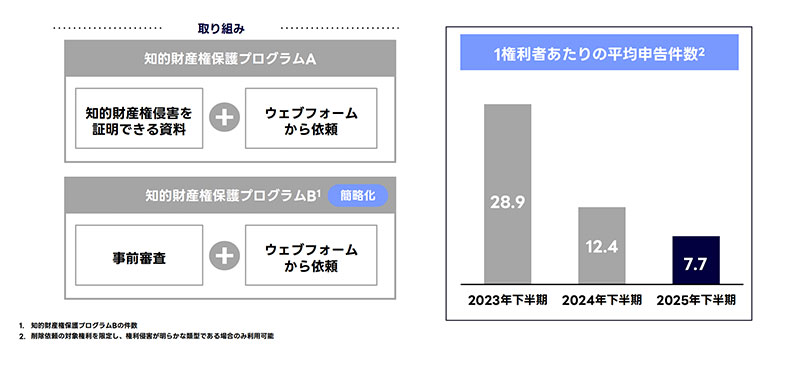 2024年に実施した「出店審査厳格化」や「途上審査強化」によって、個人事業主への出品数制限なども対策。これが奏功し、権利侵害が疑われる商品は減少傾向にある。