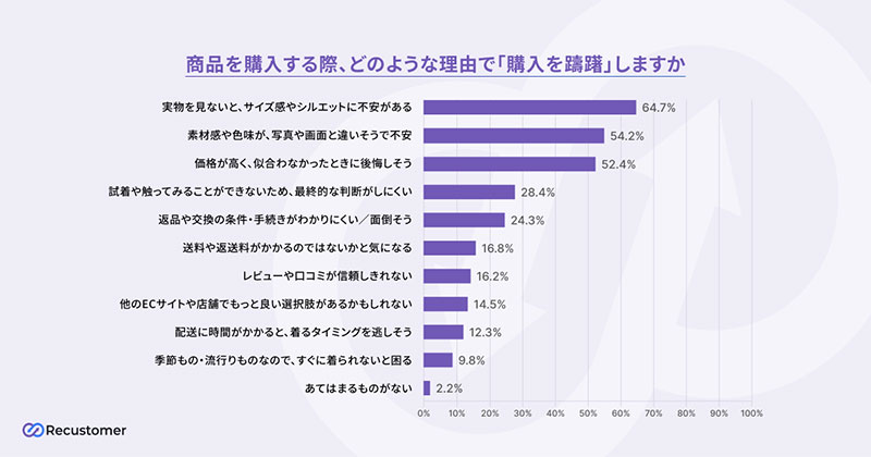 アパレルECで購入をためらう理由トップは「実物確認できない」こと Recustomer調査