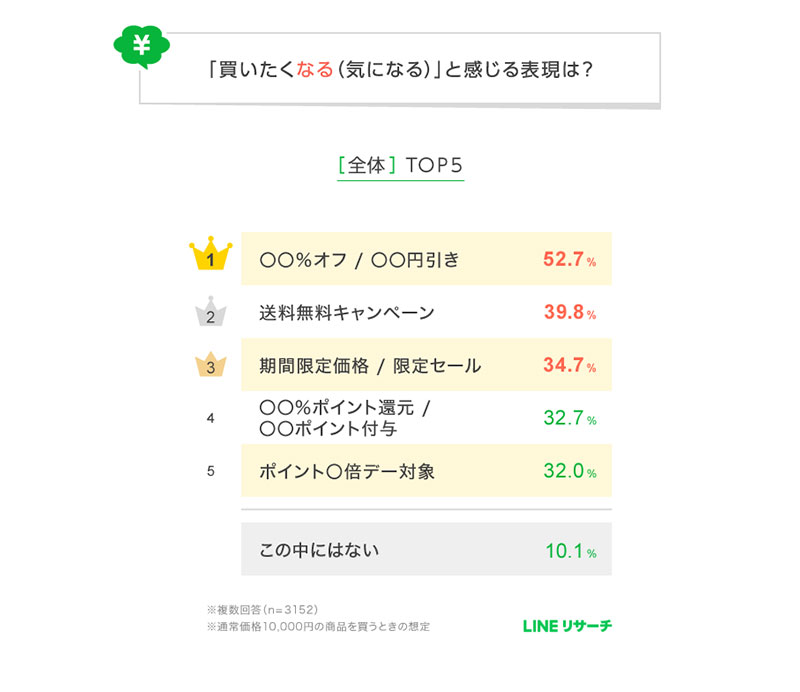 最も買いたくなる表現「〇〇%オフ/〇〇円引き」 LINEヤフー調査