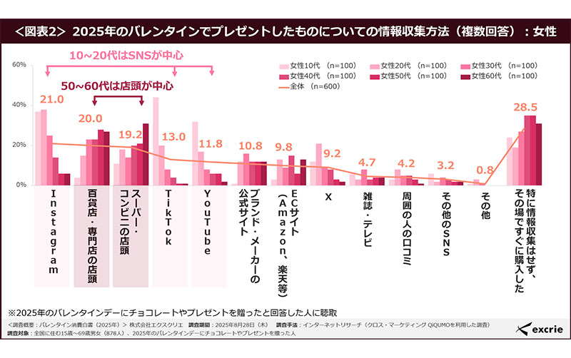 「バレンタインの情報収集」10~20代はSNS、50〜60代は店頭 エクスクリエ調査