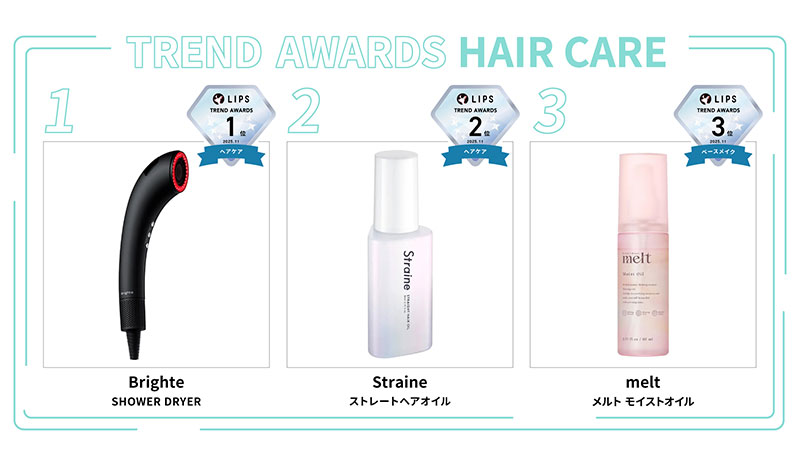 ヘアケア部門では、乾燥シーズンにうるおいチャージを叶える3アイテムが並んだ。中でも、コスメではなくドライヤーが1位にランクインしている点は注目すべきだろう。