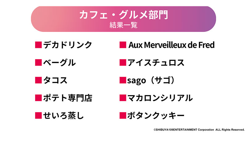「カフェ・グルメ部門」では引き続き中国・韓国発祥の食トレンドに注目が集まっている。